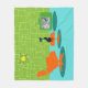 Se dice que los perros tienen propietarios y los gatos tienen personal. ¡El felino de esta manta de gatitos de la era retro espacial no podía estar más de acuerdo! El estilo de los años 60, de diseño minimalista, cuenta con un elegante gato negro en una sala de estar moderna de mediados de siglo. La sofisticada sala cuenta con una pared verde de piedra. La moqueta es aqua con sombras verde azuladas. El mobiliario de la habitación incluye una figura amarilla, de luz sputnik, una tumbona naranja con taburete a juego y una televisión verde con orejas de conejo. El afortunado gato negro se puede ver encaramado en el taburete delante del televisor. ¡Su programa favorito está en marcha! En la pantalla de televisión podemos ver a una familia de televisión clásica en blanco y negro resolviendo todos los problemas de la vida en un programa de media hora. Este diseño es perfecto, si lo decimos nosotros mismos.