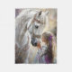 Imaginen cubrir a su niñita que ama los caballos con esta maravillosa belleza de un caballo blanco. Bajo los suaves cielos pastel de su pueblo, una niña pequeña llamada Ella tenía un amigo verdadero —su majestuoso caballo blanco, Celeste. Ella no era solamente la jinete de Celeste; era su confidente. Desde la novia joyada que Ella decoraba a mano hasta el gentil toque que siempre le daba a Celeste, su vínculo era especial. Una noche de primavera, mientras las nubes pintaban el horizonte en tonos de lavanda y oro, Ella susurró su sueño a Celeste: atravesar el bosque encantado del que hablaban los aldeanos, pero nadie se atrevió a entrar. Cuentos de una luz mágica escondida en lo profundo del bosque la intrigaban. Con coraje en su corazón y Celeste a su lado, se aventuraron en el bosque. Las flores de cerezo fluyeron a su alrededor, brillando ligeramente en el crepúsculo. A medida que el camino se hacía estrecho y misterioso, Ella sentía un apuro de emoción y miedo. Celeste, al sentir las emociones de Ella, la desconcertó suavemente, asegurándole que nunca estaba sola. Juntos descubrieron un prado secreto bañado en una luz brillante —un lugar lleno de flores radiantes y pájaros cantantes. En el centro había un estanque parecido a un espejo que brillaba bajo una suave brisa. Ella contempló sus aguas cristalinas y vio la reflexión no sólo de ella sino de su inquebrantable vínculo con Celeste. En ese momento, Ella se dio cuenta de que la verdadera magia del bosque encantado no era su misterio —era la fuerza encontrada en la confianza y la compañía. A medida que regresaban, las historias que llevaban a casa no necesitaban adornos. Su aventura se había convertido en un recuerdo grabado en ambos corazones para siempre: majestuoso caballo blanco Celeste, bosque encantado, flor de cerezo resplandor, unión de confianza, aventura mágica, estanque cristalino, prado secreto brillante, cielos de lavanda, viaje cordial, flores radiantes, canto de pájaros, compañía inquebrantable, vibrante entorno misterioso, sueño de infancia, amistad con fortaleza memoria intemporal, espléndido paisaje mágico, la aventura de Ella, cautivante de los sentidos cuentos majestuosos manta de lana de caballo blanco, caballo blanco Celeste, arnés con joyas sobre el caballo., unión de caballos chicas, colores de chica de vestir lila morada, caballo chica, caballo chica de poda.
