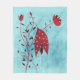 Espectacular manta de arte con un espeluznante ilustracion carnívoro que representa una rara flor rojiza que se hunde en muchos ojos sobre un fondo color azul oscuro y texturado.