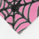 Diversión y espeluznante para Halloween. Las telarañas están llenas de arañas, sobre un bonito fondo rosado.