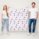 Esta manta de lana media tiene un diseño art deco de espirales en tonos violeta, azul claro y marrón, sobre un campo de blanco. Si quieres el mismo diseño con colores diferentes, envíame un mensaje.