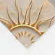 Este diseño presenta un sol icónico y estilizado con acentos dorados que simbolizan la calidez y la fuerza vital de la naturaleza. Sus rayos irradian hacia afuera, encarnando temas de energía y renovación en un fondo de luz suave y texturado. Perfecto para inspirar positividad y vitalidad en cualquier espacio. "Imagen original generada por Meta AI. La IA generó obras de arte. Con licencia CC BY-SA 4.0.