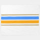 Esta moda, de diseño deportivo, presenta un fondo blanco con franjas de carreras horizontales en el centro azul brillante y amarillo dorado, adosadas con piñones marrones cálidos.