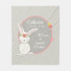 Unas estadísticas de natalidad estilizadas manta de lana con un pequeño conejito y un patrón de flores en el fondo. Hermoso regalo personalizado para chicas de recién nacido.