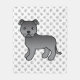 El original ilustracion personalizado de Destei de un lindo color de abrigo azul Inglés Staffordshire Bull Terrier / Perro de raza Staffie. El fondo tiene un patrón de huellas de perros grises.