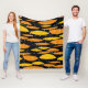 Manta Polar Estilo atómico, patrón geométrico naranja negro.