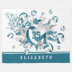 Esta frazada de chica fresco con temática de voleibol presenta una "explosión" de bolas de voleibol verde azuladas y grises estilizadas de diferentes tamaños y formas estrella grises y verde azuladas - la estrella verde azulada tiene un patrón minúsculo de puntos de polka blancos - personalizar con el nombre del jugador y número de camiseta - la banda de color verde azulada en el borde inferior es personalizable, al igual que el fondo general y el color de texto - katz_d_zynes
