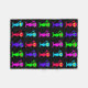 Cinco extranjeros coloridos con brillar intensamente grande observan soportando el signo de la paz con una mano. Diseñado por el caramelo Adams.