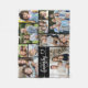 Familia Moderna 11 Fotos Script Nombre Corazón Personalizado Fleece Blanket. Envuelve a tus seres queridos en recuerdos de confort y fotos con esta manta de fotos que incluye una plantilla de collage de fotos fácil de cargar con 11 imágenes cuadradas y rectangulares de varios tamaños, el título FAMILIA en una tipografía de escritura moderna acentuada con un intercambio cardíaco y personalizada con un nombre familiar en tu elección de texto, gráficos y colores de fondo (mostrado en blanco sobre negro). Esta manta, suave y acogedora, hace un regalo sincero o una adición significativa a su propia decoración. Perfecto para pasear en el sofá, exhibiéndose como un recuerdo o conmemorando una ocasión especial o un hito. OPCIONES DE BLANKET: La muestra se muestra en la manta de fleece de 30x40", ya que hay otros tamaños disponibles en la página de pedidos o transferirlos a una manta Sherpa u otro producto. ASISTENCIA: Para obtener ayuda con la modificación del diseño, el cambio de tamaño o la transferencia del diseño, póngase en contacto con el diseñador ANTES DE PEDERLO a través de la pestaña MENSAJE de chat Zazzle o envíe un correo electrónico a makeitaboutyoustore@gmail.com.