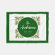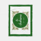 Esta manta de lana de Navidades ofrece una acuarela de ramas de pino acentuadas con brotes de bayas rojas. El gráfico aparece alrededor de un círculo verde oscuro que incluye texto de estilo escrito a mano para personalizar.