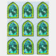 Una manta con un fantasma hecho al estilo de una vidriera medieval. El diseño está en un fondo transparente para que el vendedor pueda elegir el diseño que mejor se adapte a sus necesidades.