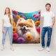Manta Polar Fantasy Cute Vivid Pomeranian Baby Flowers