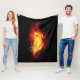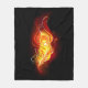 Una brillante pluma de pavo real hecha de fuego y llama sobre fondo negro.