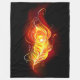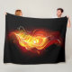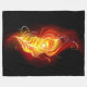 Una brillante pluma de pavo real hecha de fuego y llama sobre fondo negro.