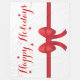 Elegante y festivo arco rojo personalizado creado digitalmente. Encima de la proa se lee "Felices Fiestas" junto con algunas pequeñas estrellas rojas.