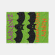 Murciélagos negros fantasmagóricos sobre un fondo verde brillante que puedes personalizar con tu propio saludo especial de vacaciones y elección de nombre en morado.