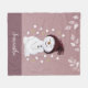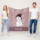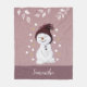 Esta manta de lana rosada tiene un muñeco de nieve dulce disfrutando de la nieve. personalice esta manta de lana con un nombre.