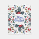 Patrón de bayas azules y rojas sobre fondo blanco - Feliz Navidad. plantilla de manta de lana de personalizable
