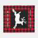 Esta rústica manta de pulpa de búfalo rojo con un elegante reno blanco saltando. Encima del ciervo se lee "Feliz Navidad" en tipografía blanca. Debajo del ciervo se encuentra el nombre de su familia en un tipo de letra moderno que puede personalizar. Perfecto para decorar tu decoración de casa durante las vacaciones. Diseñado por los artistas @ Susan Coffey y Tim Coffey.