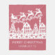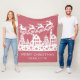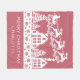 Merry Christmas Santa Winter Snowflakes Personalized Name Fleece Blanket incluye a Santa Claus con su reno volando sobre casas cubiertas de nieve con el texto "Feliz Navidad" en un guión moderno de caligrafía y tu nombre personalizado debajo en blanco sobre un fondo rosado. Personalice editando el texto en los cuadros de texto proporcionados. Perfecto para regalos de Navidades. Diseñado por ©Evco Holidays www.zazzle.com/store/evcoholidays