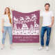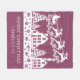 Merry Christmas Santa Winter Snowflakes Personalized Name Fleece Blanket incluye a Santa Claus con su reno volando sobre casas cubiertas de nieve con el texto "Feliz Navidad" en un guión moderno de caligrafía y tu nombre personalizado debajo en blanco sobre un fondo morado. Personalice editando el texto en los cuadros de texto proporcionados. Perfecto para regalos de Navidades. Diseñado por ©Evco Holidays www.zazzle.com/store/evcoholidays