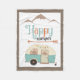 El arte digital cutáneo incluye el texto "Happy Camper", la flecha de estilo Boho, la silueta de montaña y el trailer de viaje RV de estilo retro