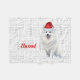 Diversión para calentar la temporada junto a la chimenea o arrojado sobre el sofá. Un esquimal americano bien vestido está listo para la temporada de vacaciones y se sienta con un fondo de arte de la palabra con el nombre del perro o el nombre de su familia - perfecto para la decoración de la casa del amante de los perros. Un regalo perfecto para tu perro también.
