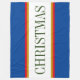 Este colorido diseño navideño presenta una amplia franja blanca horizontal central reseñada en pinstripes coloreadas rojas y doradas entre audaces rayas exteriores azules. El texto opcional de NAVIDADES, si se utiliza, se puede personalizar.