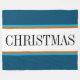 Este colorido diseño vacacional cuenta con una amplia franja blanca horizontal en el centro, delineada en pinstripes azules y marrones entre las franjas exteriores verde azuladas. El texto opcional de NAVIDADES, si se utiliza, se puede personalizar.