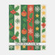 Festiva y acogedora manta de vacaciones con rayas rojas y verdes con elementos florales de acuarela, acentos de pino y berry, adornos, estrellas, copos de nieve y un toque botánico de boho. Perfecto para el invierno y el otoño con un toque de encanto vintage.