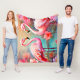 Manta Polar Flamencos rosas en un lago con flores-20231