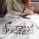 Apagón de teclado uniendo pájaros cantantes sentados entre una composición musical de un canto de pájaros, sin sintonía