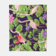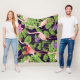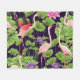 Manta Polar Flamingo, plantas tropicales, fondo negro.