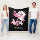 El diseño del producto presenta un flamingo con patrones de paisajes caleidoscópicos en tonos rosas. Este ilustracion de aves tropicales con texto personalizado hace una manta moderna y única.