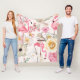 Manta Polar Flamingo rosa y flores blancas rosadas exóticas.
