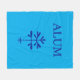 Una acogedora manta de lana de poliéster, con "ALUM" y el sólido retoño en azul Roca de Simón. Disponible en 3 tamaños: pequeño (30"x40"); mediano (50" x 60"); grande (60" x 80").