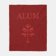 Una acogedora manta de lana de poliéster, con "ALUM" y el solido retozo en la roca roja de Simón. Disponible en 3 tamaños: pequeño (30"x40"); mediano (50" x 60"); grande (60" x 80").