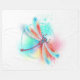 Rojo, volador, dibujado artísticamente, en colores brillantes con hiridismo texturizado, alas azules sobre fondo blanco, pintadas con salpicaduras de pintura acuarela. Flora de dragón roja brillante.