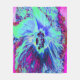 Manta Polar Flor de hibiscus verde y azul psicodélico retro