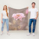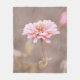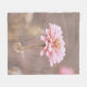 El arte cuenta con una hermosa flor rosa claro de zinnia sobre un delicado tallo color oliva con un fondo rosa borroso. Arte original de Featherfall Studio.