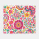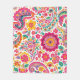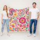 Floral Paisley Pattern with pink yellow and blue paisley pattern flowers on a white background fleece blanket.