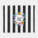 Una manta moderna de lana con acuarela floral con fondo rayado en blanco y negro. Personalizar el monograma eligiendo entre muchas fuentes maravillosas.