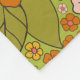 Esta manta tiene un patrón floral retro en verde, naranja y rosa inspirado en los diseños de los años 60 y 70.