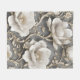 Este diseño muestra la belleza y la elegancia de las flores blancas en un fondo gris. Las flores son grandes y realistas, creando un impresionante contraste con las hojas metálicas de oro. Los pétalos delicados de las flores destacan de forma bonita, creando un aspecto a la vez elegante y sobrio.