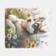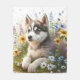Magnífica acuarela Siberian Husky diseño con flores amarillas, azules y violetas