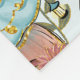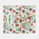 Nombre de personalizable y manta monocapa de lana con tiburones pintados titilmente, plantas, flores y setas rojas con un falso efecto purpurina.