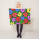 Flores hibiscus y hojas Monstera diseño de Rockett. El color de fondo de la manta es el personalizable.