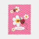La manta roja personalizada para los niños. manta de nombre personalizada y bonito de color rosa con ladybugs de color rojo brillante / ladybirds y flores gráficas blancas. Hace un regalo único y personalizado de cumpleaños o celebración para chicas. Personalizar con su propio nombre de chicas actualmente lee Jasmine. Ideal para viajar y para calentarse en las noches de invierno. © Arte gráfico original y diseño creado de forma única por Sarah Trett para www.mylittleeden.com