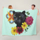 Retrato de gato jaguar negro con coloridas baldosas mexicanas y flores.
