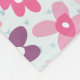 Una manta con un lindo patrón floral. Compuesto por flores de forma rosada y violeta irregulares en un estilo retro de los años 60 groovy. El desmayo desvaneció los corazoncitos azules, pimienta el fondo sobre un fondo azul pálido. Un círculo dibujado a mano blanca está sobre la parte superior, personalizado con tu nombre u otro texto.